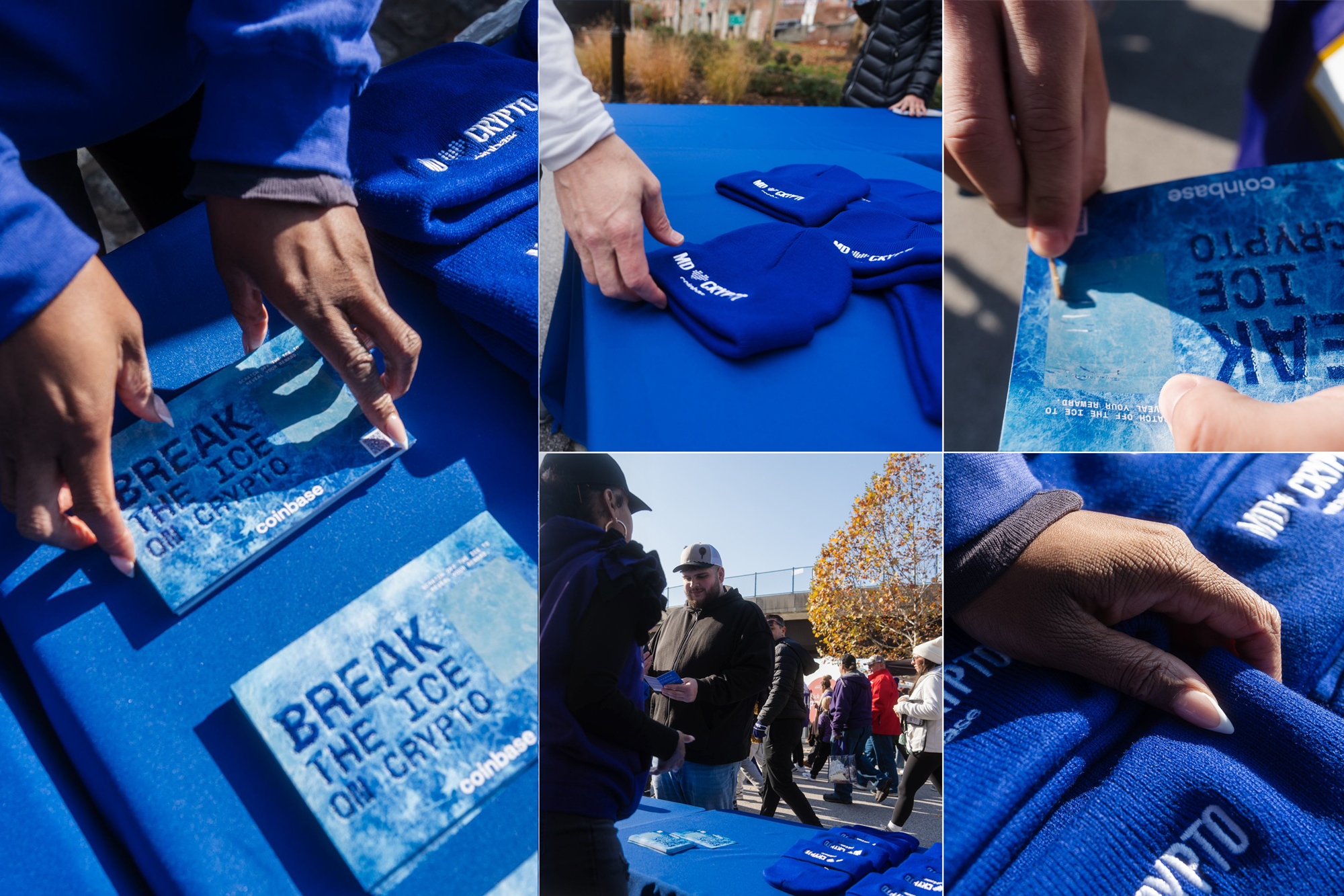 Branded locker room photo moment, Coinbase jerseys, winter merch, and scratch cards offering Bitcoin incentives created multiple entry points for engagement while reinforcing the campaign message.